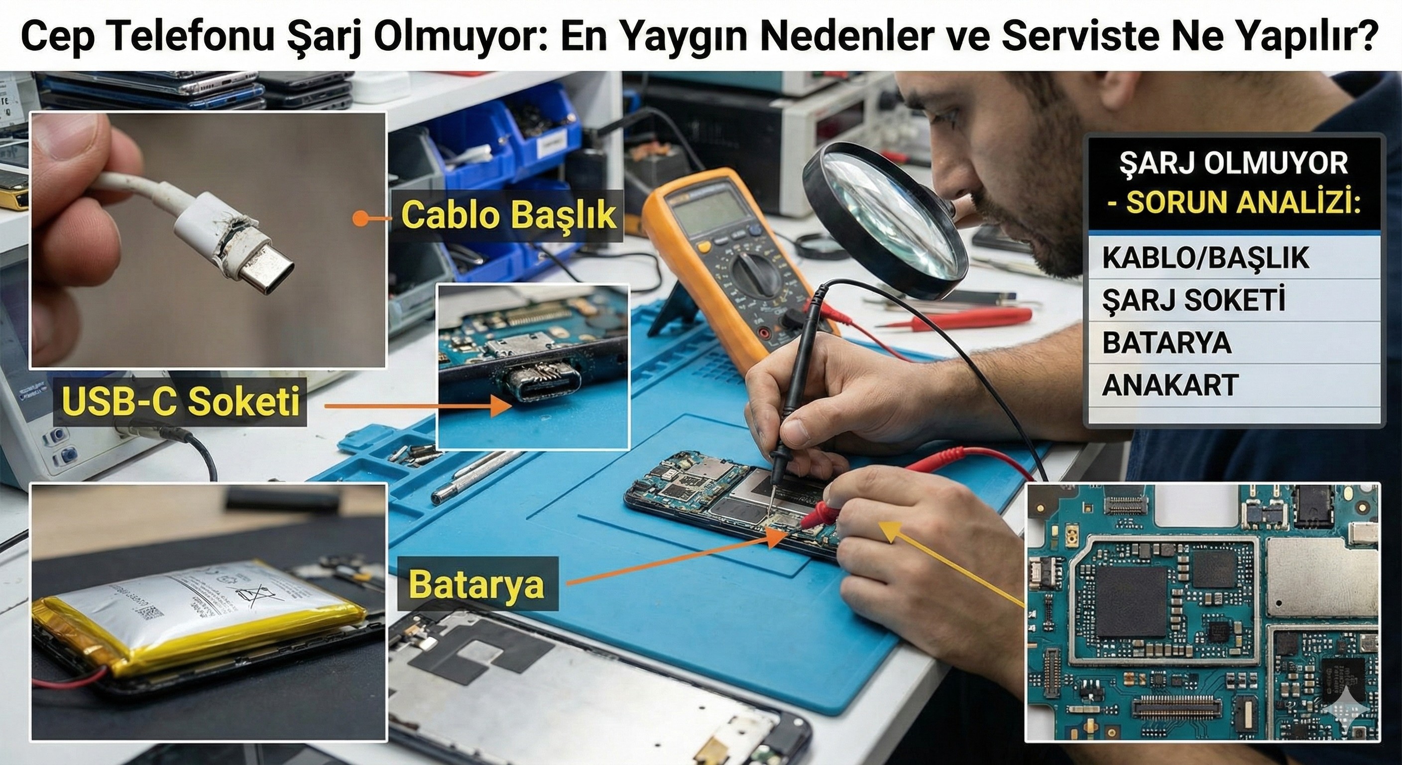 Ekran, batarya, şarj soketi, kasa, anakart gibi işlemler servis ortamında profesyonel ekipmanla yapılır.