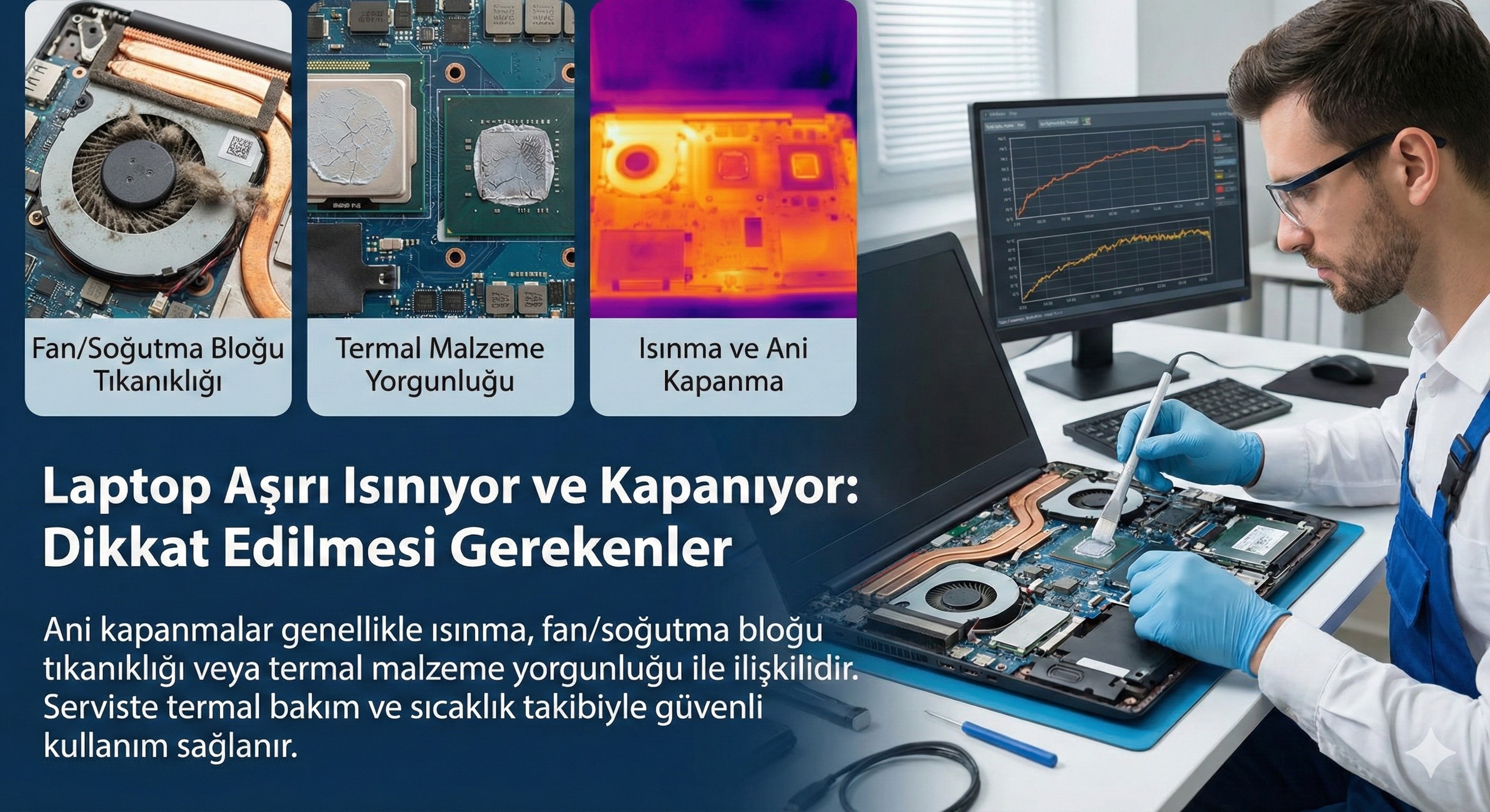 Açılmama, ısınma, performans düşüşü, klavye/ekran arızaları ve parça değişimleri için çözüm sunarız.